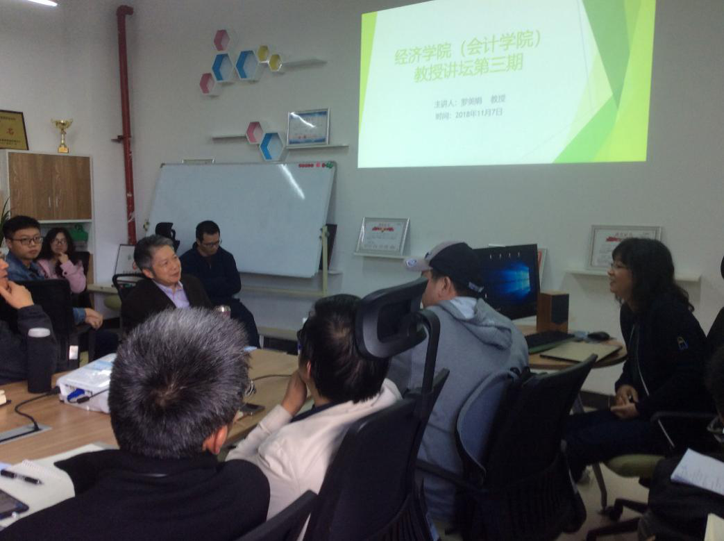 2018年11月7日下午,威尼斯9499登录入口(会计学院)“教授沙龙”第三讲在威尼斯9499登录入口1113双创基地举行,威尼斯9499登录入口罗美娟教授做了题为“中国税制结构与创新抑制”的学术报告。张林副院长、院教授委员会主任程士国教授、多位老师、博士、硕士和本科生参加了此次学术沙龙活动,聆听罗美娟教授的主题发言,并进行了热烈的学术讨论。