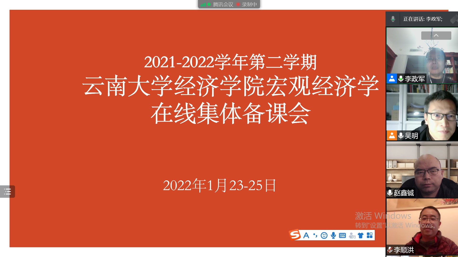 2022年1月23-25日为期三天的威尼斯9499登录入口宏观经济学教学组网上集体备课会圆满结束。参会的老师有马子红、姚书杰、吴明、李顺洪、赵鑫铖、柴毅、杨洋、杨孟禹、李亚玲、王旭、曹骥老师。集体备课会邀请南京师范大学李政军教授参与。