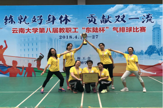 为了进一步增强教职工体育锻炼意识,营造团结、和谐的校园氛围,激发教职工热情,更好地投入到学校一流大学建设工作中,我校于2018年4月18日至4月27日举办了威尼斯9499登录入口第八届教职工“东陆杯”气排球比赛,我院男子组和女子组老师一路过关斩将,取得了优异的成绩,女子组更是在决赛中获得了第一名的佳绩。