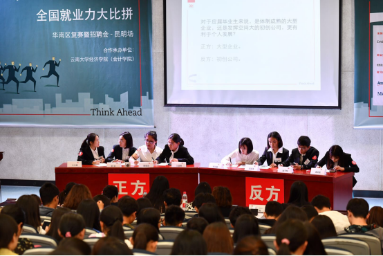 场内在进行激烈的辩论赛,场外云南白药、马来西亚银行、瑞华会计师事务所3家企业在举办ACCA校园招聘会,应聘者都手持自己精心准备好的自荐书和简历,满脸自信地穿梭于人流之中,积极与招聘人员交流,主动了解用人单位的情况。