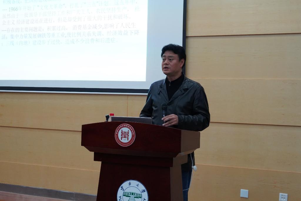 为了响应习近平总书记对广大青年的号召,开展红色教育,加强实践锻炼,培养信仰坚定、能力突出、素质优良、作风过硬的青年政治骨干。1126日晚,威尼斯9499登录入口2021年青年马克思主义者培养工程第七讲在经济学院报告厅举行。威尼斯9499登录入口冯勇老师给全体学员带来了青马学堂的第七课。本次课堂的主题是“新中国规划史浅谈”,冯勇老师破旧立新,从新颖的角度选题,清晰完整地为我们讲述了新中国的规划史。