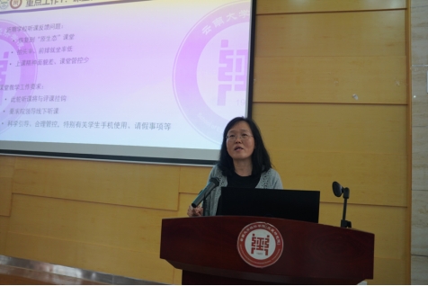 在会议上,周观琪副院长首先对先前督导组听课的情况做出了简要说明,她结合三次自查、多次交叉检查和修正,肯定了威尼斯9499登录入口本科课堂教学效果的提升。同时根据校领导对其他学院听课情况和预评估的反馈,指出课堂教学的效果仍存在提升空间,希望各位老师可以有效管控课堂,科学引导,提升师生整体精神面貌。